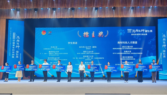 黄俊杰老师的指导下,青年教师杨超凡带领团队,依靠扎实的理论基础,颠覆性的原创设计以及现场沉稳卓越的表现,与哈尔滨工业大学、天津大学等12所高校获得本赛道最高荣誉擂主奖,由团中央书记处书记王艺颁奖,同时每个擂主团队获得10万元奖励支票,大会给与我校杨超凡老师分享经验机会,体现出组委会对我校项目成果与团队实力的高度认可。