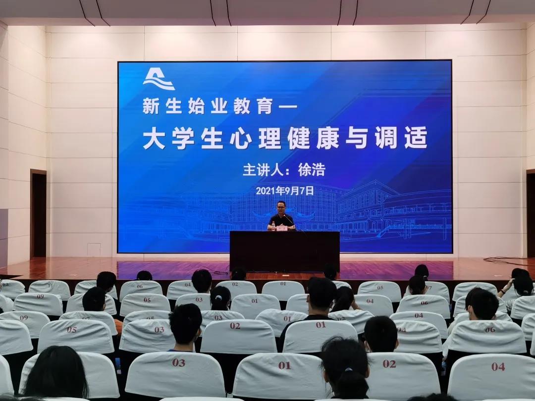 9�7日上�8:30,我院邀请校心理健康中心主任徐浩老师在铁城科教馆报告厅开展大学生心理健康与调试讲座,引导新生积极正确面对初入大学的各种问题,保持良好的心态,投入大学的学习生活中�