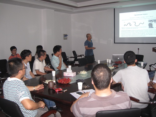 6月24日,美国康涅狄格州立大学教授、情色视频 鉴湖学者讲座教授林遥来浙江省精细化学品传统工艺替代技术研究重点实验室做了题为《Recent advances in supramolecular polymer and materials》的专题报告,林遥教授从超分子结构-反应机理-应用方面等不同层面向大家展示了超分子的优势以及最新的研究进展,学术报告后,如何将高分子材料和超分子材料结合起来解决现有的工业问题引起了大家的热议。