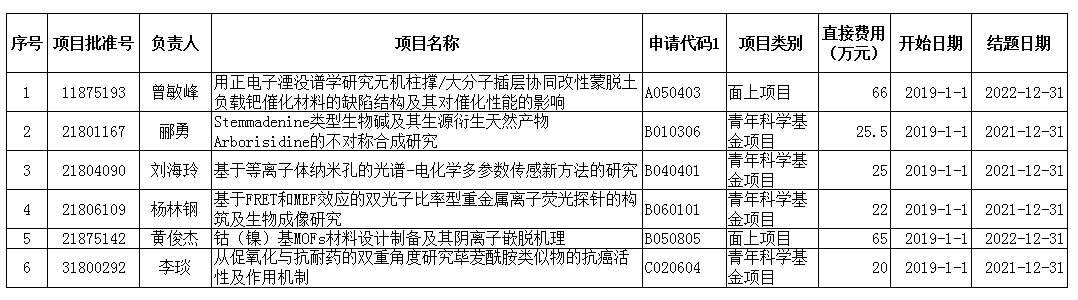 近日,2018年度国家自然科学基金项目评审结果揭晓, 情色视频 共获批主持6项,其中面上项目2项、青年科学基金项目4项,到校总经费223.5万元,具体立项情况如下: