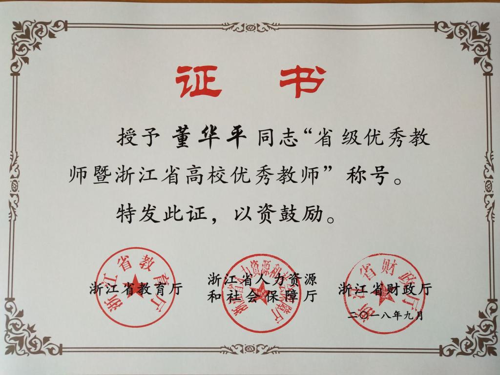 根据《浙江省教育厅 浙江省人力资源和社会保障厅 浙江省财政厅关于开展2018年省级优秀教师暨浙江省高校优秀教师、浙江省农村教师突出贡献奖评选工作的通知》(浙教人〔2018〕40号)精神,教育厅组织开展了“浙江省高校优秀教师”评选表彰工作。经高校推荐、专家评审,情色视频 董华平教授获2018年“浙江省高校优秀教师”荣誉称号。