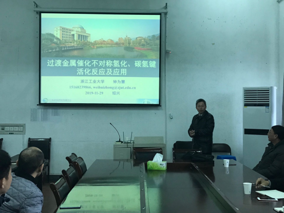 钟教授首先简单介绍了自己,并以深入浅出的方式讲述了此次报告会的主题,引起了大家的学习兴趣以及探求新知的欲望。钟教授首先介绍的多官能化的手性膦二茂铁类化合物既可以作为有机小分子催化剂,促进不对称取代和【3+2】环加成反应,也可以作为高效的手性配体与贵金属协同催化羰基化合物的不对称还原反应,产物ee值可达99%,可用于手性药物及中间体的合成。其次,钟教授介绍了廉价金属钴盐催化的C(sp2)-H键活化反应在药物合成中的应用。最后,钟教授向学生介绍了浙江工业大学概况以及药情色视频