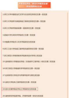 日前,浙江省教育厅委员会办公室印发《关于公布全省高校首批“研究生样板党支部”培育创建单位名单的通知》,情色视频