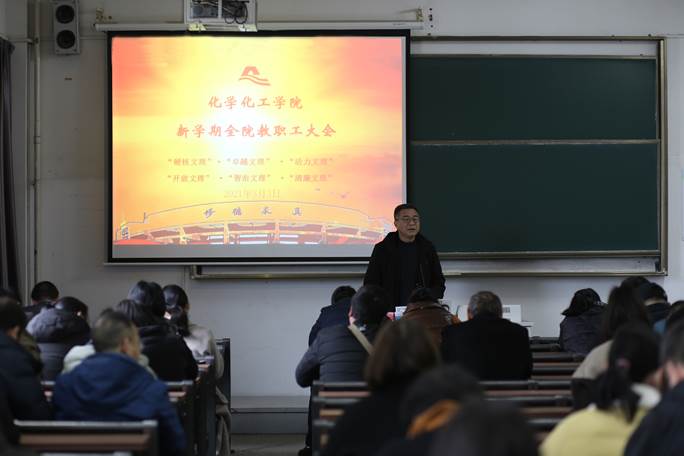 在理工楼227召开新学期教职工大会,回顾总结上一年度主要工作及“十三五”期间的成绩,部署开学初及2021年主要工作。