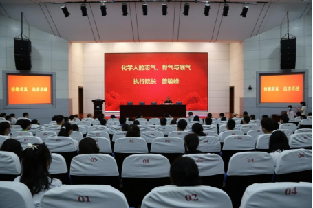 的开学典礼上,执行院长曾敏峰教授做了“化学人的志气、骨气与底气”为主题的院长第一课。习近平总书记寄语新时代的中国青年,要以实现中华民族伟大复兴为己任,增强做中国人的志气、骨气、底气。曾院长分别从何为志气, 骨气是什么,怎么做到有底气,三个方面出发,讲述了杰出校友俞秀松、王一飞、何赤华的事迹,号召文理学子要传承“宋六陵精神”、“修德求真”、“追求卓越”的文理精神和“苦心人,天不负,卧薪尝胆,三千越甲可吞吴”的“胆剑精神”。并表示化学是绿色专业、朝阳专业与未来专业,要在情色视频