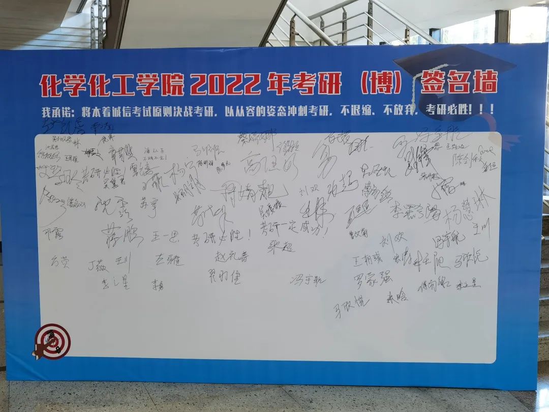 在会场入口处摆放了考研(博)签名墙,考研(博)学子纷纷在签名墙上签下了自己的姓名并写下了对考研的期许.