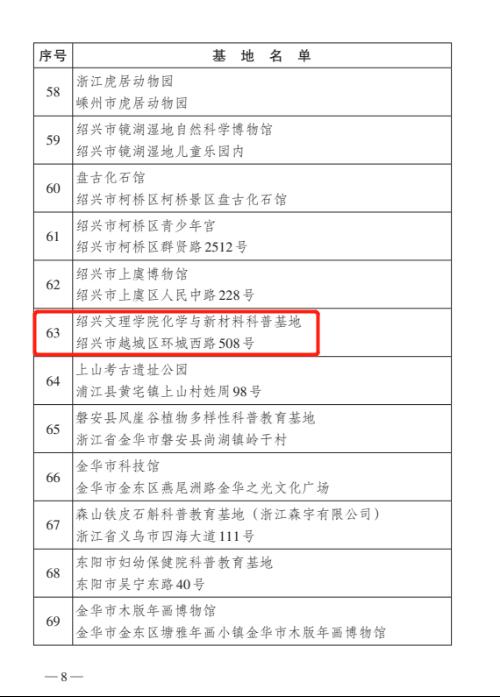 化学与新材料科普基地入选。