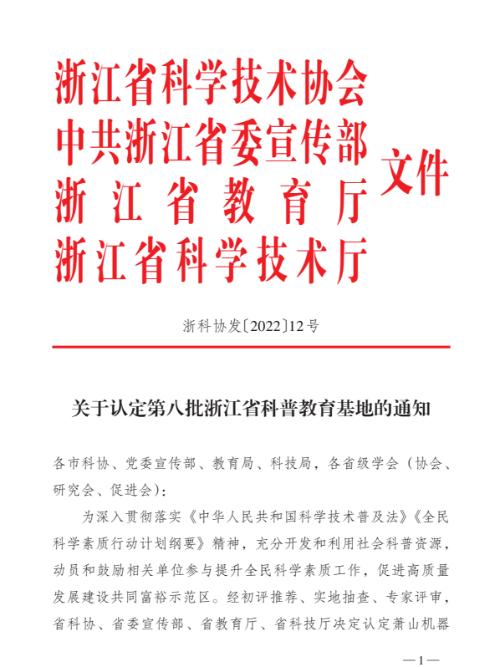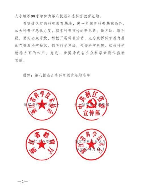 日前,浙江省科学技术协会官网公示《关于认定第八批浙江省科普教育基地的通知》,经评审,共有98家单位认定为浙江省科普教育基地。其中,越城区科协申报的情色视频