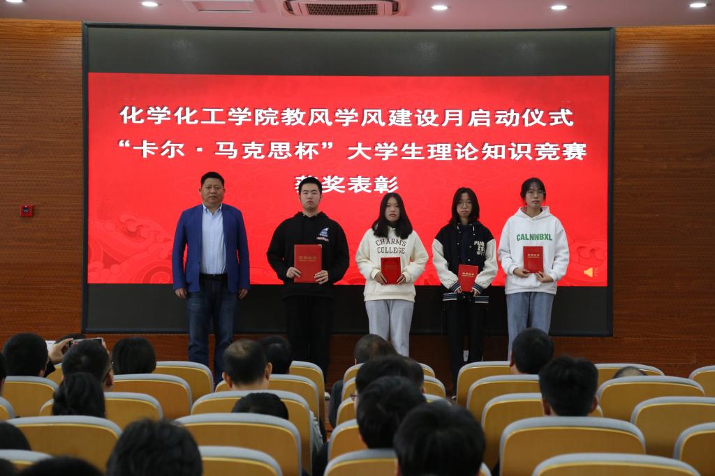 党政领导为2022年实验室安全知识竞赛获奖代表、2022年“卡尔·马克思杯”大学生理论知识竞赛获奖代表、2021学年先进班集体、优秀学风班、校优秀学生代表颁奖。