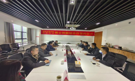 执行院长曾敏峰、校地方服务与合作处副处长(主持工作)夏婷,博士创新站博士、浙江材华科技有限公司董事长李军配出席签约仪式。