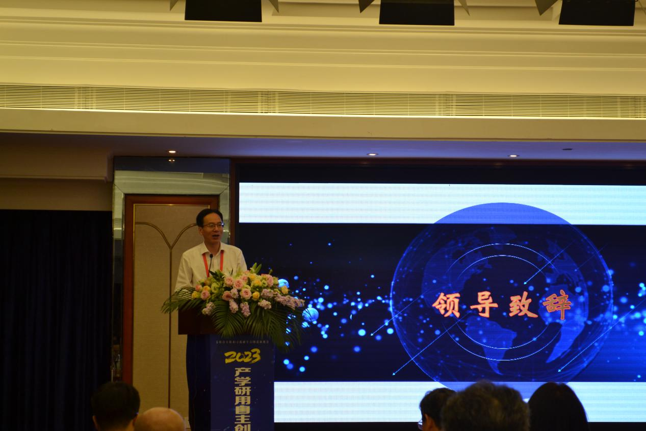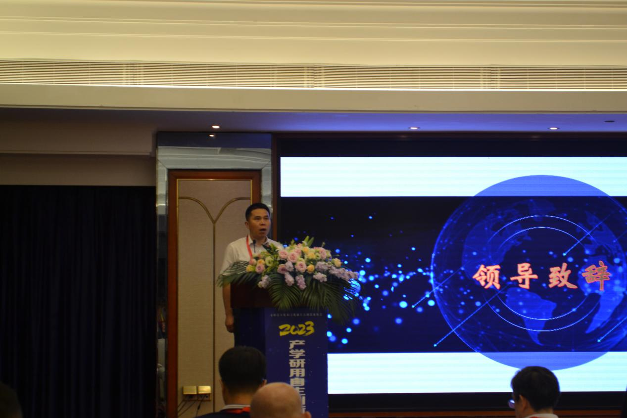 党委副书记张宏代表承办方致辞,他首先介绍了学校办学和相关专业的建设情况。同时指出,学校高度重视服务地方经济社会发展,聚焦区域需求,紧紧围绕“生命健康、新材料”两大科创高地和“生命健康、高端纺织、高分子新材料、芯片制造”等万亩千亿产业,促进教育链、人才链和产业链、创新链有机衔接,解决科技成果转化“最后一公里”问题,为地方经济社会发展作出了较大贡献。他希望通过本次大会搭建的信息、沟通平台,汇聚领域产学研用各界资源力量,促进自主成果供需对接、转化,提升产业的整体竞争力。