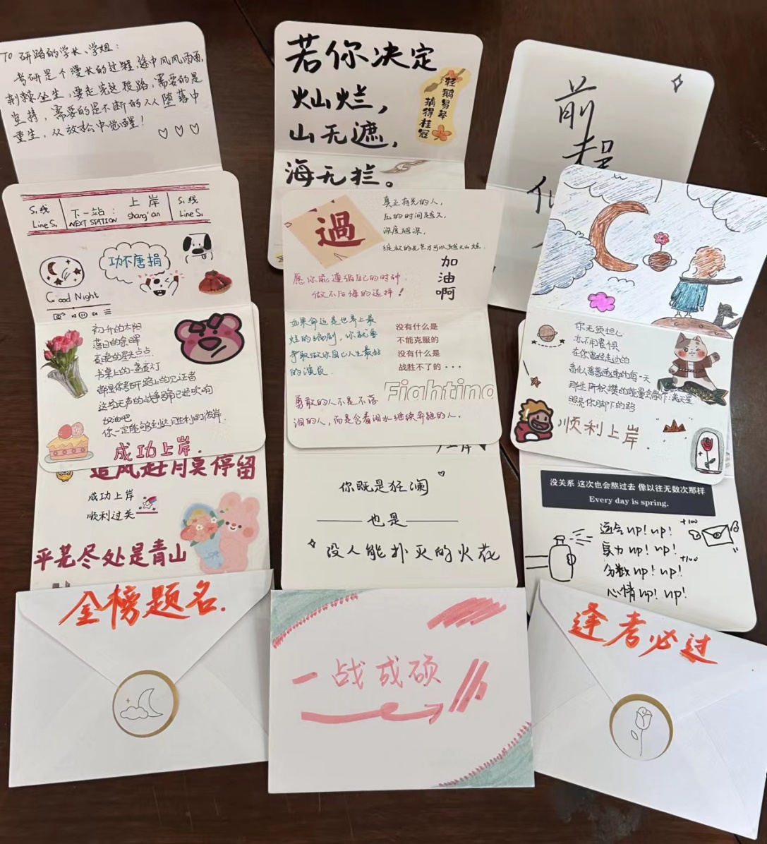全体党政领导为考研(博)学生送上精心准备的学习慰问品和来自学生会的暖心祝福贺卡,在寒冷的冬日里给考研(博)学子送上了一份直达心底的温暖。