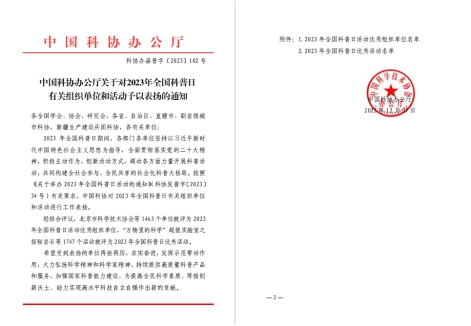近日,中国科协办公厅发文对2023年全国科普日有关组织单位和活动予以表扬,其中情色视频