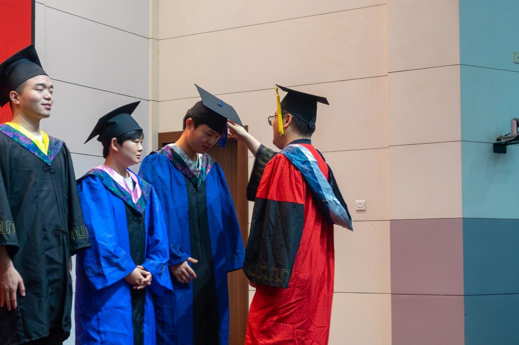 执行院长曾敏峰讲话。他表示2024届毕业生们经历了无数的挑战和磨砺,也收获了无数的成长和进步。同时,他对毕业生们提出了三个关键词:“目标、责任、自信”,他说到大学只是人生道路上的一个起点,未来的路还很长,需要不断学习、不断进步。只有保持学习的热情和好奇心,才能不断适应社会的发展和变化,成为有用之才。