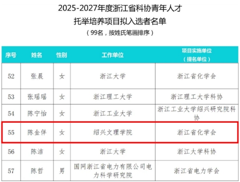 浙江省科协青年人才托举培养项目是为深入贯彻落实中央、中国科协和省委人才工作会议精神,推动青年科技人才的成长与发展而设立的。该项目依托“同行遴选、导师引领、需求导向、共同培养”的原则,旨在支持一批具有发展潜力的优秀青年科技工作者,在其创造力黄金期脱颖而出,为浙江省的科技创新和发展注入新的活力。本届共有99位青年科技人才入选。