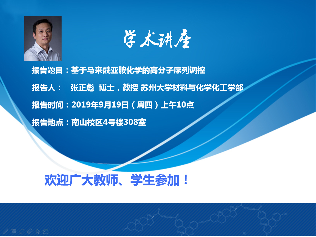 报告摘要:高分子链结构(如链长、序列、立构、拓扑结构等)是高分子材料的基本结构,决定了材料的多层次结构以及最终性能。高分子精准合成,即对高分子链结构进行精确调控的合成,对于定制高分子的新结构、准确研究高分子结构与性能关系,以及研制新型高分子材料有着至关重要的作用。报告人近年来围绕高分子链结构,包括链长、端基、序列、立构及拓扑结构等的精确调控合成,进行了系统的基础研究。本报告中,报告人将着重报告近年来基于马来酰亚胺化学的高分子序列调控,如:利用马来酰亚胺与溶剂的氢键作用构建超分子单体,实现序列的简便调控;以呋喃保护的马来酰亚胺作为休眠单体,通过程序改变聚合温度,实现了序列可控高分子的程序化合成。将马来酰亚胺基团作为合成子,建立了基于巯基/马来酰亚胺迈克尔加成反应的单一分子量且序列精确高分子的合成路线;在此基础上,将此高分子作为数据存储的载体,即数字高分子,探索在数据存储及防伪领域的应用。
