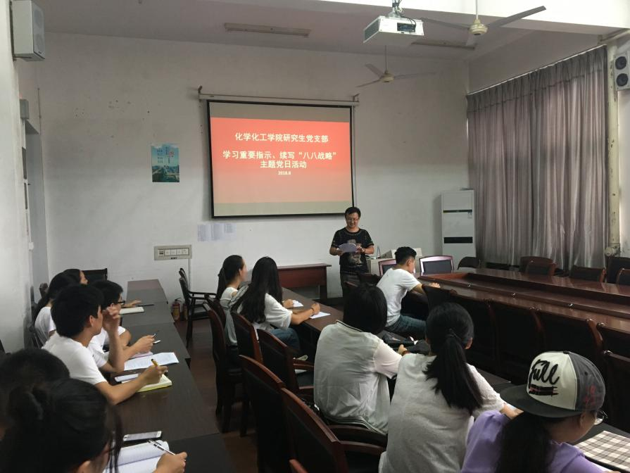 8�28日,我院研究生党支部在志廉楼136会议室就行了“学习重要指示、续写‘八八战略’”主题党日理论学习会。学习会由支部书记赵健主持�