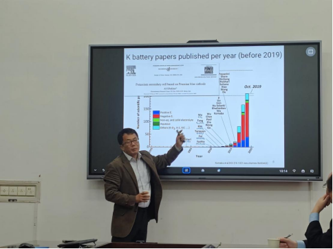 10月24日上午,美国俄亥俄州立大学吴屹影教授应邀访问情色视频 ,并作了《Potassium-based Batteries: Advantages and Challenges》的学术报告,报告会由挪威工程院院士郁志新教授主持。