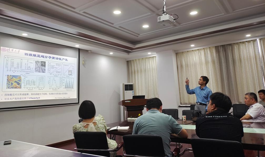 朱永法,清华大学化学系教授、博导,国家电子能谱中心常务副主任。有机半导体可以通过调控前驱体分子生色基团和助色基团的结构,实现光催化剂的宽光谱响应、消光系数高以及能带结构可调控。合成的PDI、卟啉和HOF系列超分子和聚合物光催化剂,在可见光辐照下,不仅可以降解和矿化苯酚等难降解的污染物,还可以分解水产氢和产氧。报告引起了广大师生的热烈讨论。