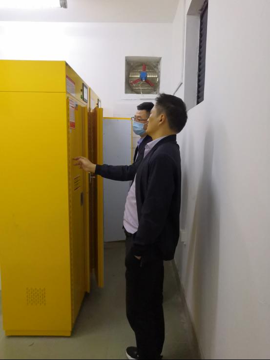 用水用电用气管理日益规范,化学品分类摆放相比之前有了明显改善。但有部分实验室仍然存在台账记录不规范,消防设施检查不及时,药品摆放不规范,实验室卫生差等情况,安全工作领导小组对检查过程中发现的安全隐患现场提出整改意见。